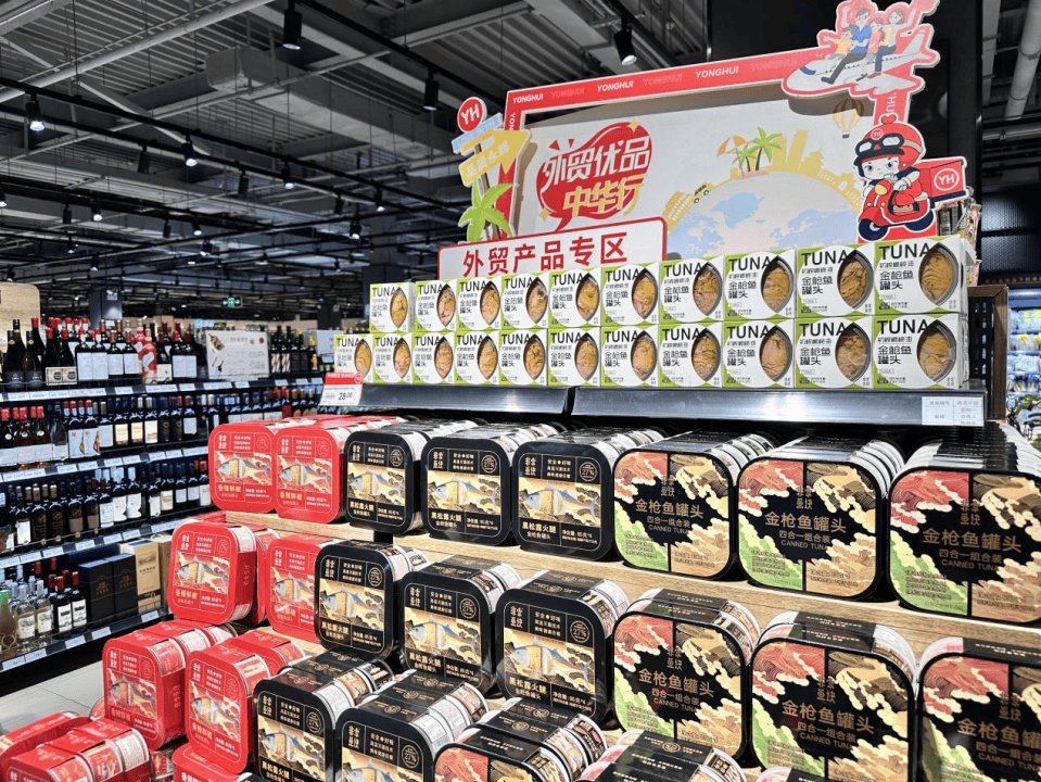 走进永辉超市喜隆多店,新斥地的外贸产物专区非分特别亮眼。黑松露火腿金枪鱼罐头、油浸蓝鳍金枪鱼、樱花味牙线棒、便携旅行套拆……首批两个品牌的9个外贸商品正在超市上架售卖。