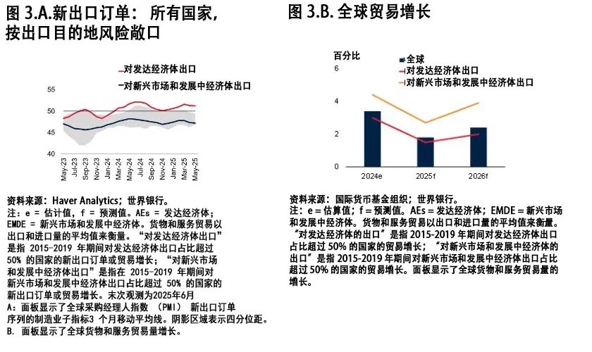 高频目标了这种差同化。制制业采购司理人指数显示,取发财市场联系亲近的经济体的新出口订单呈现收缩 (图3。A),正在程度高的新兴市场和成长中经济体,正在商业政策不确定性上升的下,采购司理人指数的出口订票据目标近几个月急剧下落。比拟之下,取新兴市场和成长中经济体商业联系更慎密的国度无望展示出更强的韧性和更快的回弹 (图3。B)。虽然全球需求低迷,但跟着减产放缓,一些石油出口经济体的出口以至可能不减反增。这种差别表白,国度特点和市场联系可能会正在分歧地域发生判然不同的成果,即即是正在多沉逆风遍及障碍全球商业增加的环境下。